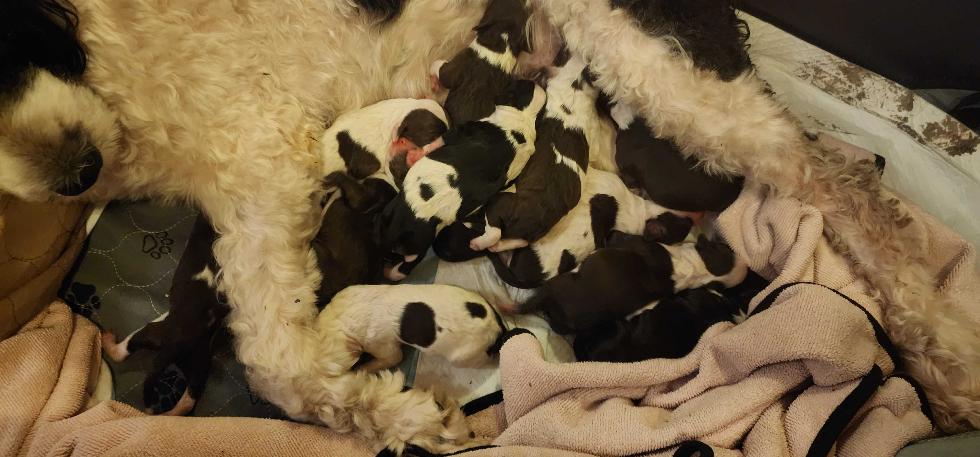 Two days early, and we can tell why. Competition for space. We are very honored to share that Hera is now the proud momma to 12 beautiful puppies. And you'd better believe that once I get some sleep under my belt there are going to be puppy pictures appearing!